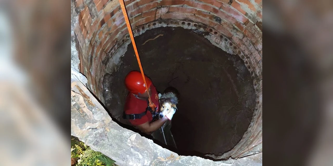 Uma equipe do Corpo de Bombeiros de Prudentópolis, na região central do Paraná, foi acionada para resgatar um cachorro que sobreviveu após cair em um poço de cerca de 10 metros de profundidade.
