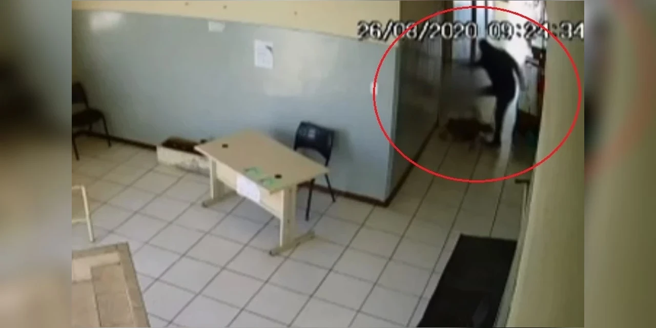 As imagens registraram o suspeito agredindo a mulher no corredor e, em seguida, saindo do posto de saúde sem ser abordado. Na sequência, um funcionário da unidade prestou os primeiros atendimentos à vítima.