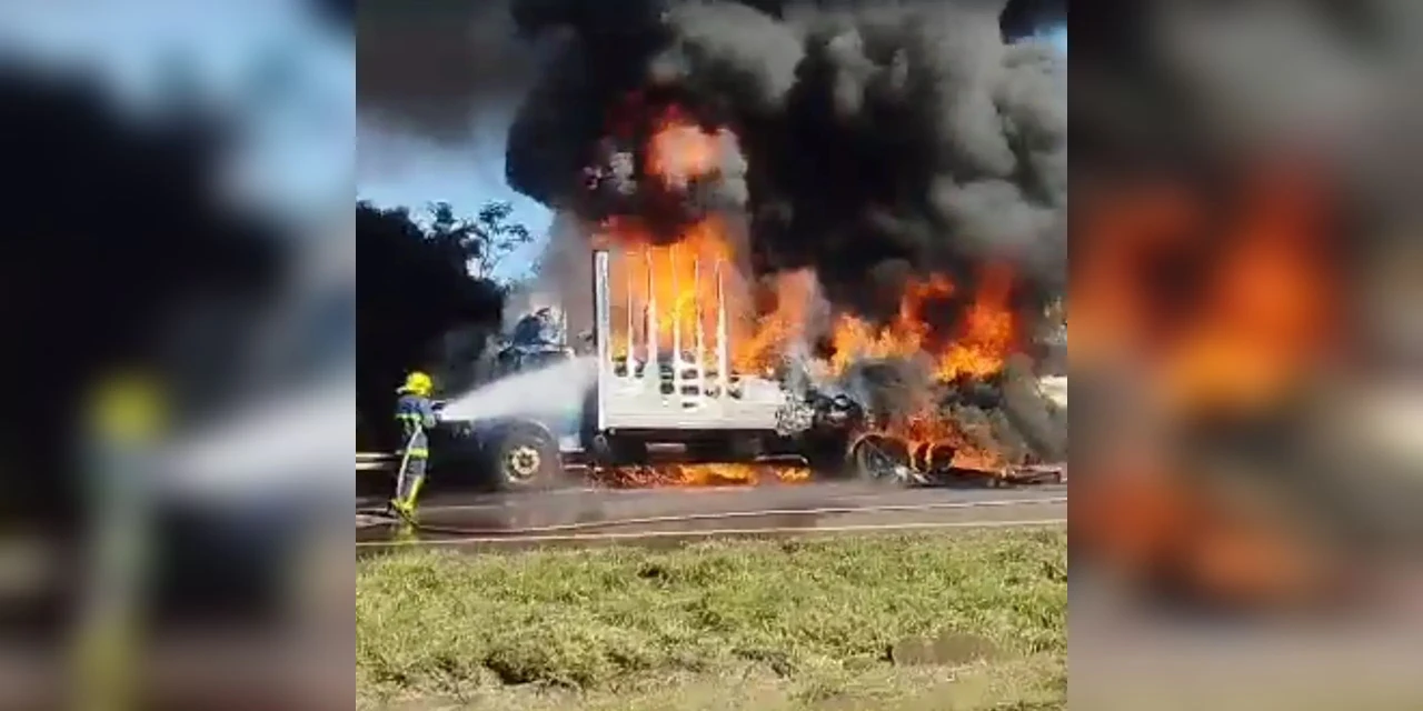A princípio, pode ter ocorrido uma pane mecânica, que resultou em chamas, já que o motorista conseguiu parar o caminhão no acostamento e sair do veículo sem ferimentos.