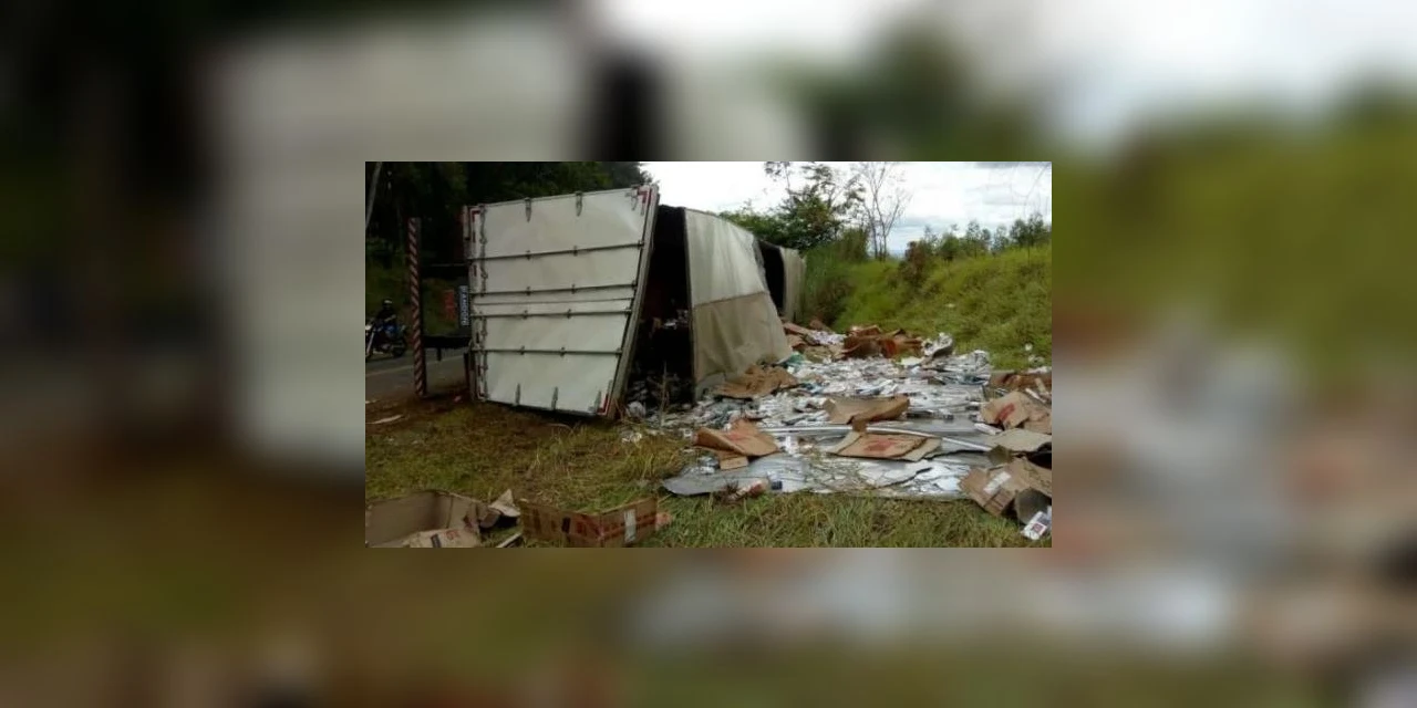 Um caminhão-baú carregado de cigarros contrabandeados tombou na quarta-feira (8), na PR 218, em Ribeirão do Pinhal, no Norte Pioneiro. Parte da carga foi saqueada por motoristas que trafegavam pela rodovia. Um ocupante do veículo ficou ferido no acidente.