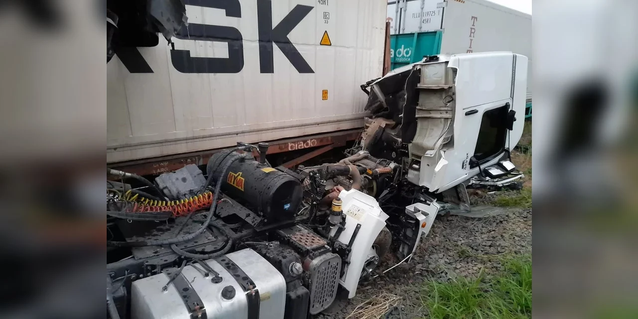 Um caminhão foi atingido por um trem de transporte de cargas ao cruzar uma linha férrea na BR-153 em Irati na região central do Paraná, nesta quinta-feira (16).