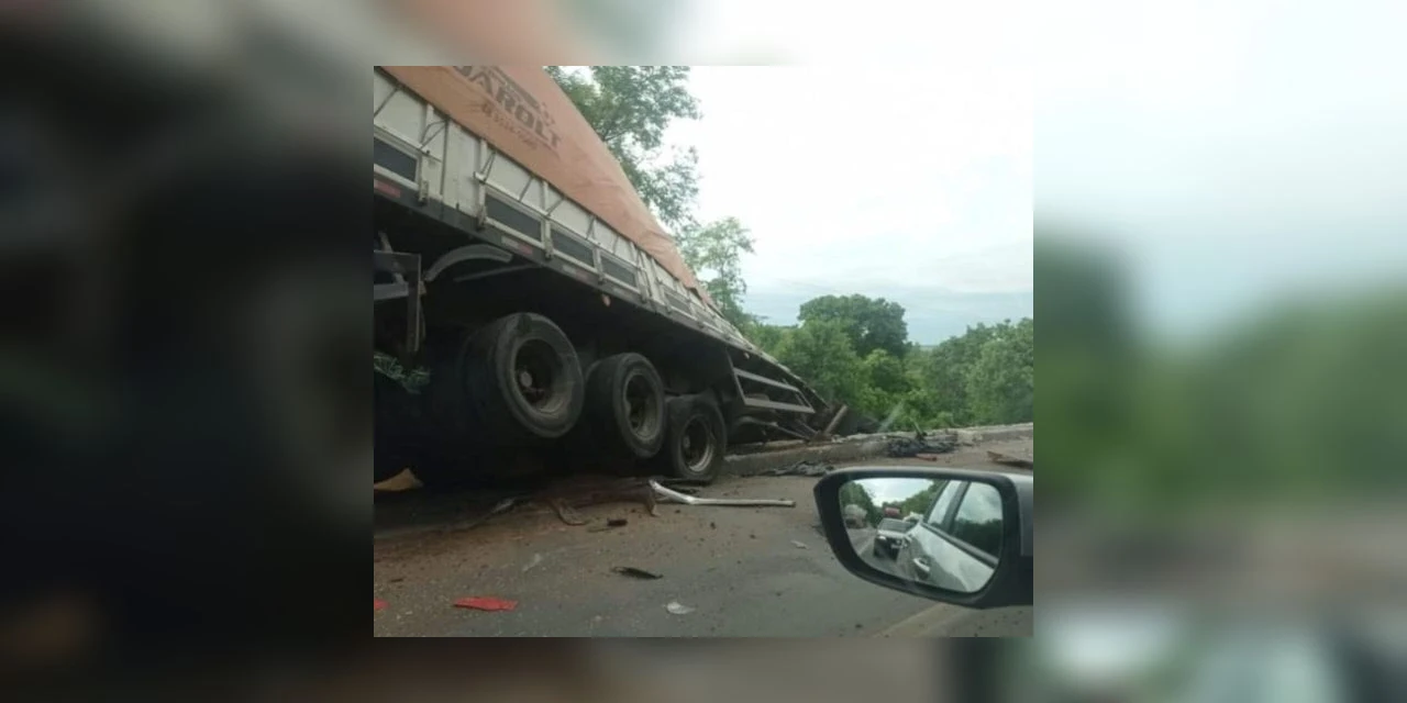 De acordo com a Polícia Rodoviária Federal (PRF), um Scania Darolt perdeu o freio antes da ponte e desviou para o acostamento da faixa do sentido contrário para não bater nos veículos que estavam na frente, mas acabou colidindo contra a lateral do VW 29.520.