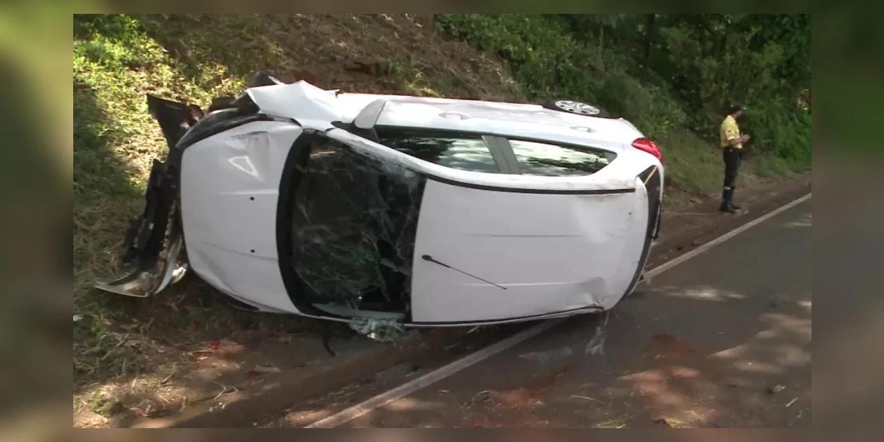 Na manhã desta terça-feira (08), um carro capotou, na Avenida Dez de Dezembro, em Londrina, norte do Paraná. A motorista, de 24 anos, contou que foi “fechada” por um caminhão.