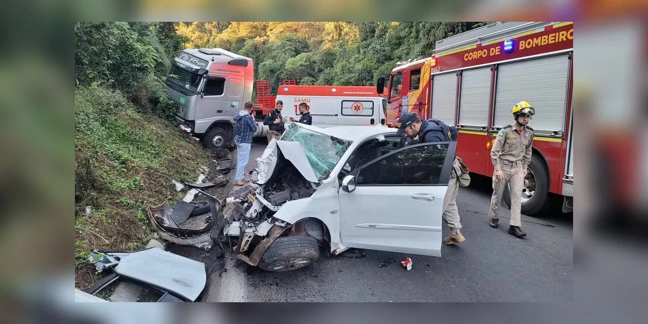 De acordo com informações apuradas pela RPC, o carro, com placas de Foz do Iguaçu, trafegava sentido Curitiba quando, no km 307, tentou fazer uma ultrapassagem em local proibido e bateu de frente com a carreta, emplacada em Leônidas Marques.