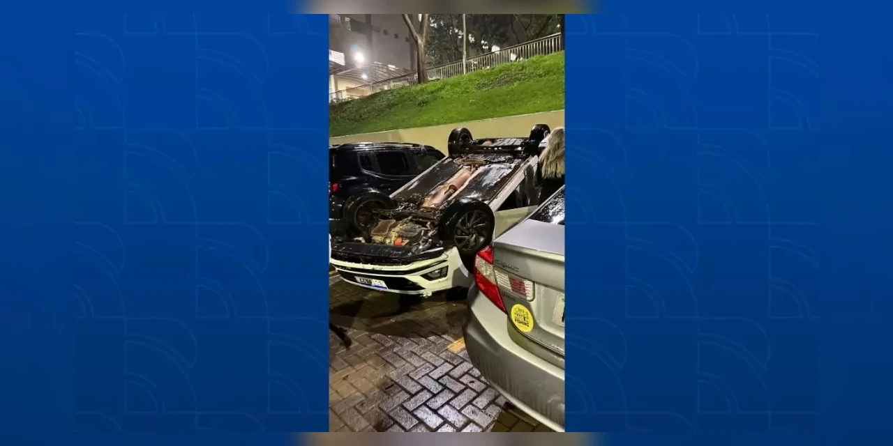 Na noite desta quarta-feira (14), três estudantes tiveram ferimentos leves após o carro em que estavam cair de um estacionamento da faculdade Unicesumar, em Maringá. A queda atingiu outros dois veículos que estavam estacionados no local.