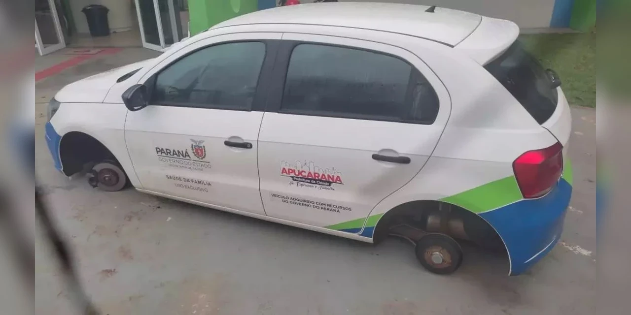 O alvo dos criminosos foi um carro da Secretaria de Saúde, que fica estacionado no pátio e amanheceu sem as rodas.