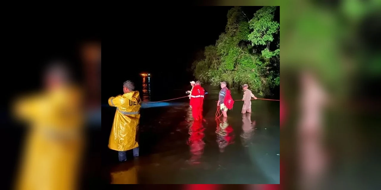Pai e filha, uma menina de 2 anos, estão desaparecidos após o carro da família ser levado pela correnteza, em Irati, na noite deste domingo (8), por volta das 21h. Segundo o Corpo de Bombeiros, a família passava por uma ponte alagada na região de Mato Queimado, interior da cidade, durante as fortes chuvas, quando a força da água rodou e arrastou o veículo com pai, mãe e filha para dentro do rio.