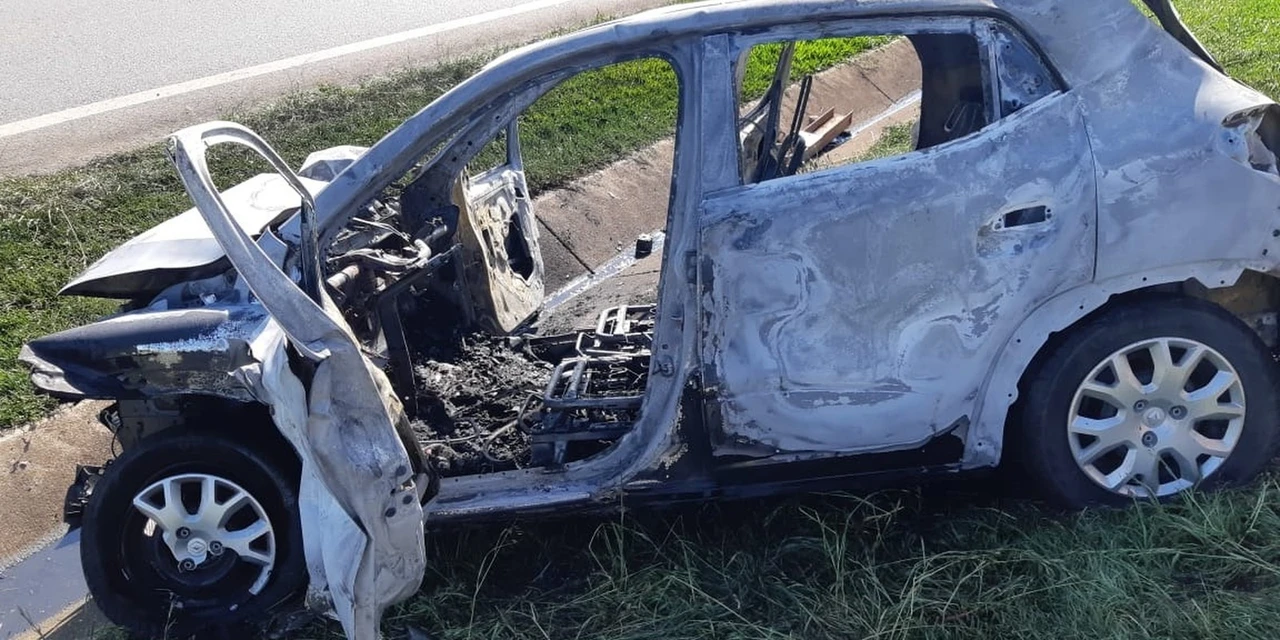 Um carro pegou fogo após o motorista perder o controle da direção e invadir o canteiro central, na BR-277, em Campo Largo, na Região Metropolitana de Curitiba, na tarde desta sexta-feira (27). Ninguém se feriu.