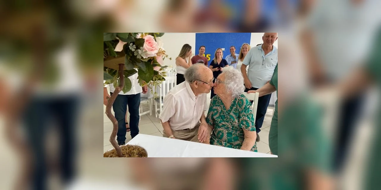 Jardino e Apolônia celebraram as bodas de diamante neste mês, ao lado dos quatro filhos, sete netos e três bisnetos. A comemoração aconteceu na cidade de Ouro (SC) e contou com a presença do frei Émerson José, que lhes abençoou.