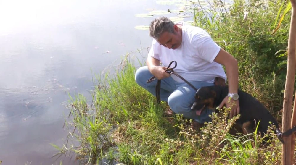 O médico largou a bicicleta e não pensou duas vezes antes de entrar na água para socorrer o cachorro. Ele conseguiu localizar os dois submersos e puxá-los para a margem.
