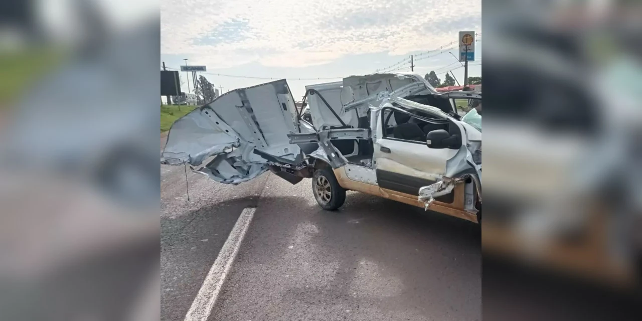 Quem olha como ficou o furgão, que entrou debaixo de um caminhão, não acredita que o condutor teve apenas ferimentos leves. O acidente ocorreu na BR-277, em Cascavel, no Oeste do Paraná, por volta das 15h30 desta quinta-feira (10).