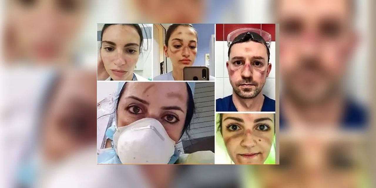 Homenageados com salva de palmas ao redor do mundo, profissionais da área de saúde que estão na primeira fila contra o coronavírus estão usando as redes sociais para mostrar como ficam seus rostos devido aos acessórios de proteção contra a COVID-9.