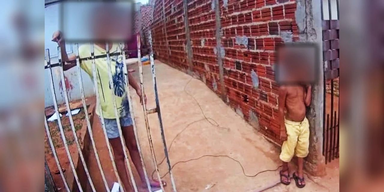 Os agentes encontraram a criança debruçada no chão com o tornozelo amarrado por um fio. O Conselho Tutelar disse que o menino estava naquela situação há pelo menos dois dias.