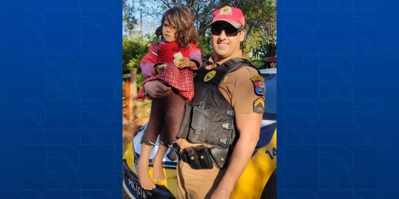 A pequena Valentina, de 2 anos e 11 meses, deu um enorme susto na família. Ela foi encontrada andando bem no meio da PR-180, em Boa Vista da Aparecida, no Oeste do Paraná, no fim de semana. E a criança levou muita sorte, pois apesar da rodovia não ser duplicada, os carros andam em muito alta velocidade naquele trecho.
