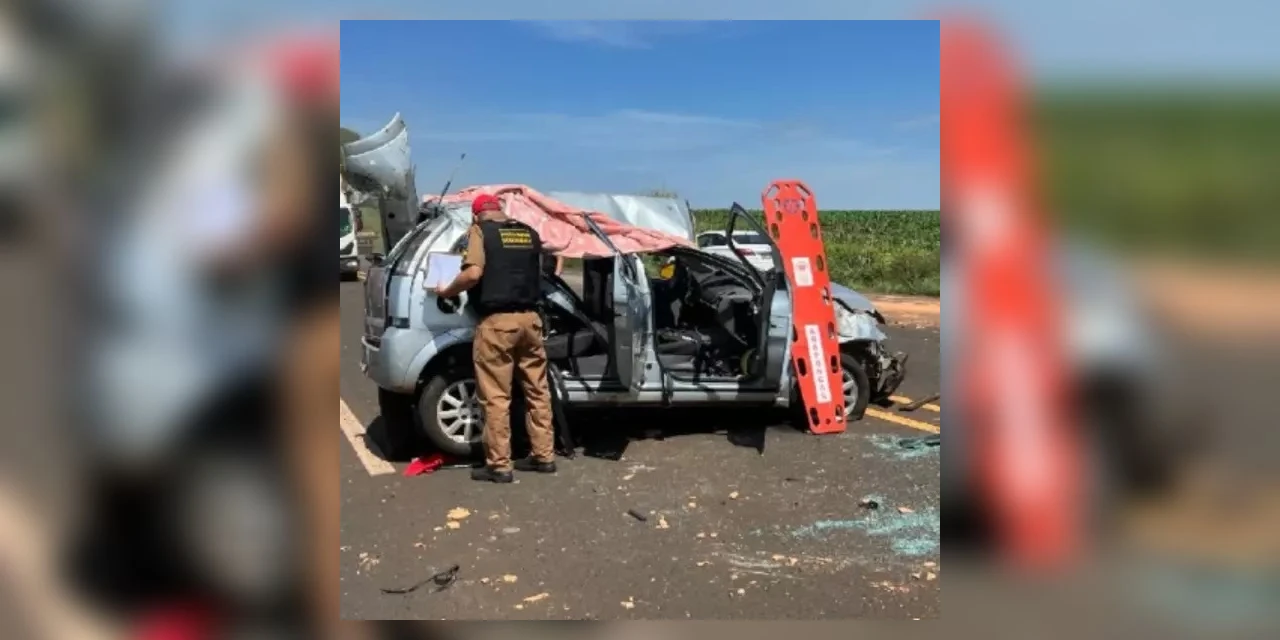 Uma criança de cinco anos e três adultos ficaram feridos após uma colisão entre um carro do modelo Meriva, uma caminhonete e um caminhão que transportava tijolos na PR-444, no distrito Caixa de São Pedro, em Arapongas, norte do Paraná, na manhã desta quarta-feira (28).