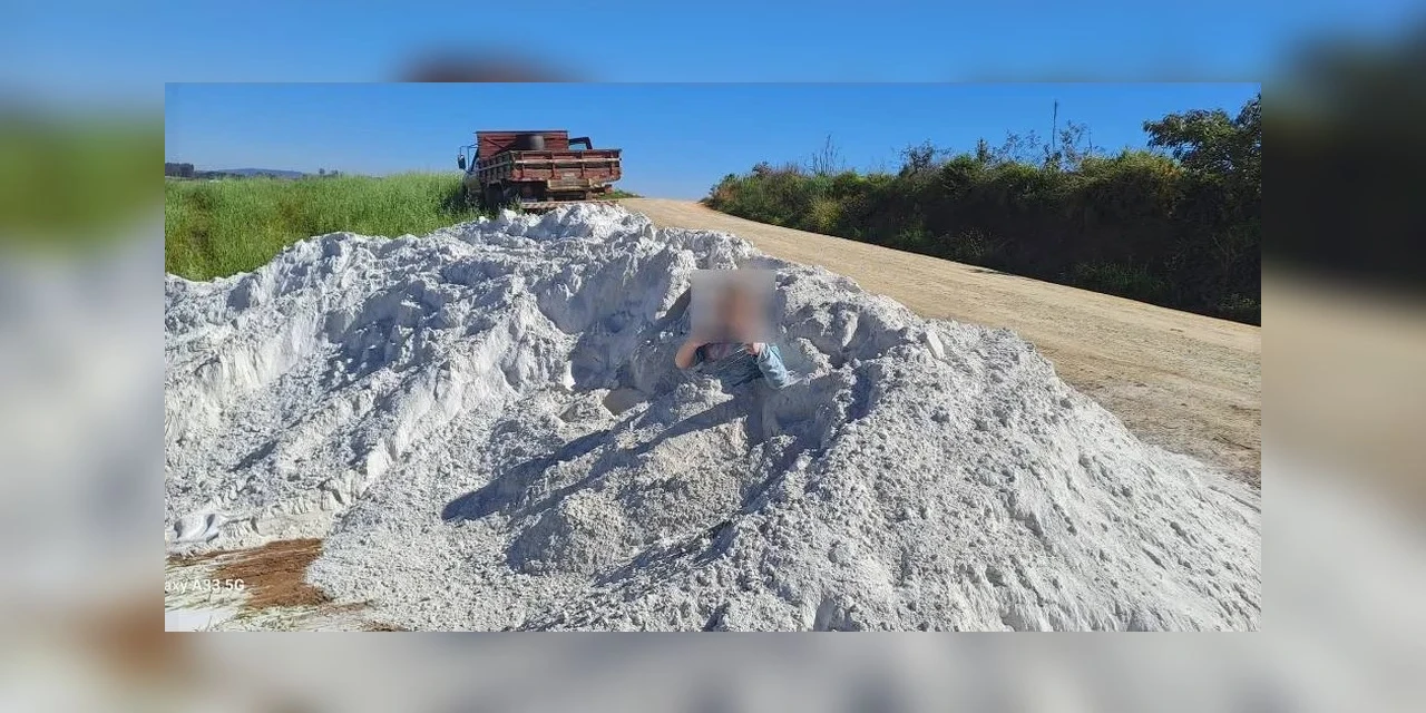 O menino morreu após brincar com uma carga de calcário que seria usada na fazenda da família.