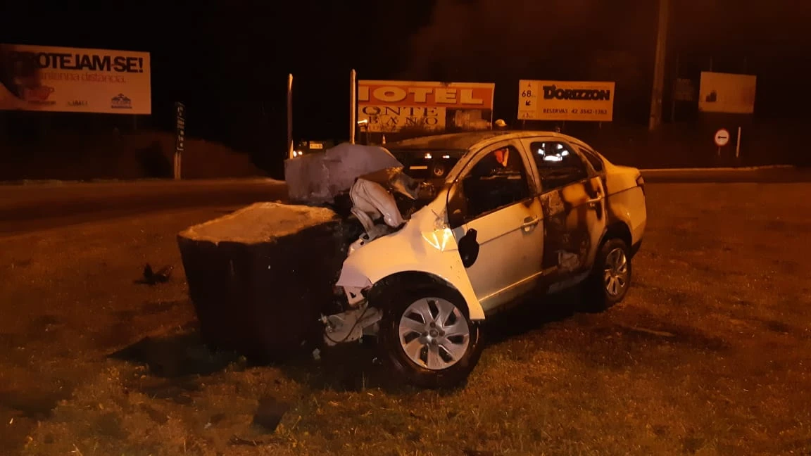 Com o impacto da colisão, o caminhão tombou sobre o acostamento. Já o veículo funerário foi arremessado para as margens da rodovia.