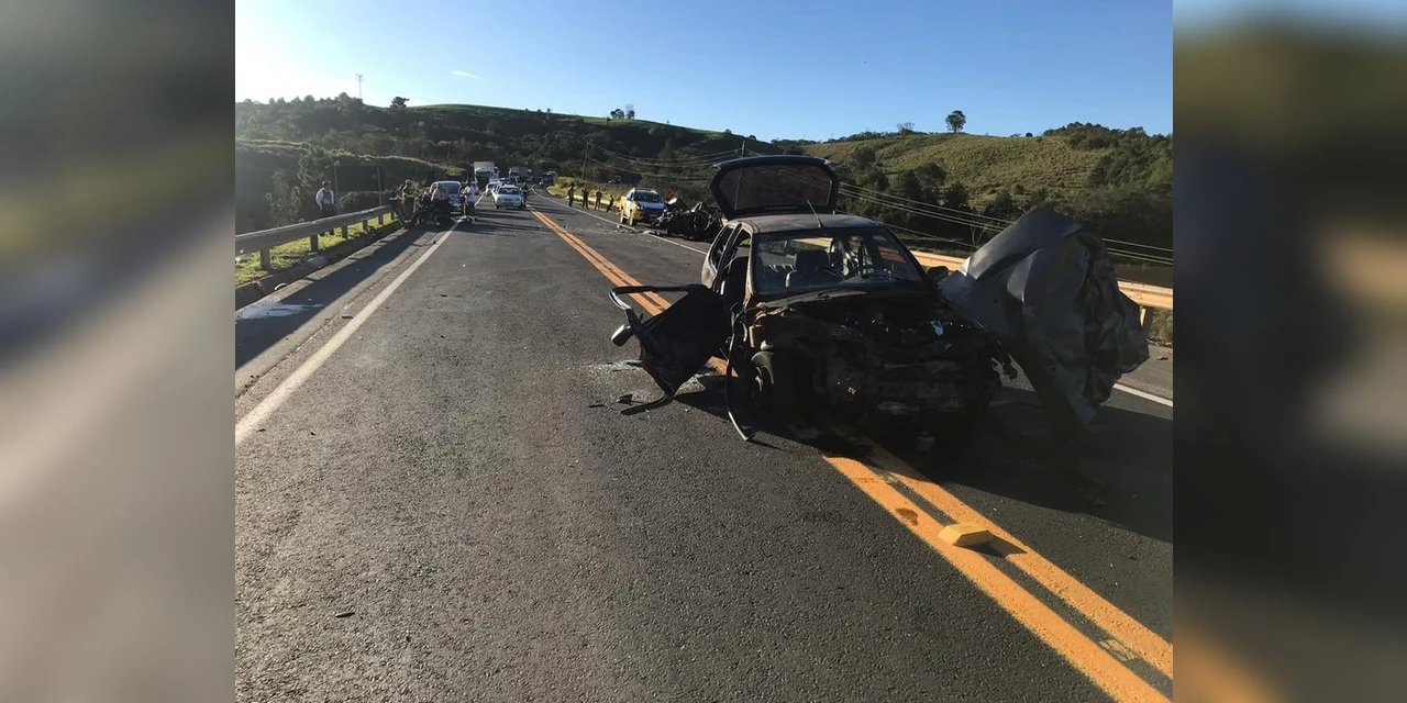 Os carros bateram de frente na altura do km 337 da rodovia, segundo a Polícia Rodoviária Estadual (PRE).