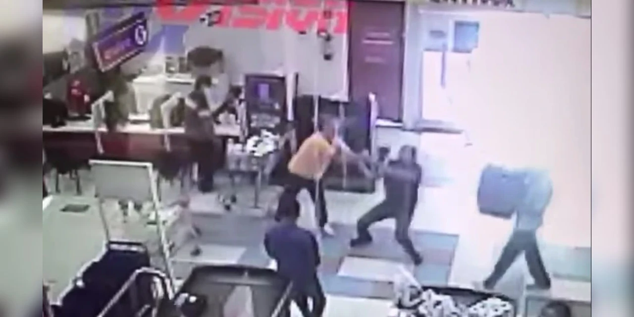Imagens de câmeras de monitoramento mostram que o cliente agrediu um funcionário do mercado e depois se envolveu em uma luta corporal com o segurança.
