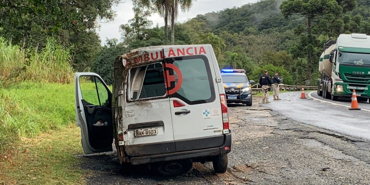 A ambulância e pertencente ao Fundo Estadual de Saúde do Paraná e estava com pneus carecas, segundo a Polícia Rodoviária Federal (PRF). O acidente aconteceu quando o veículo saiu da pista, em um trecho da BR-277, e bateu em um barranco.