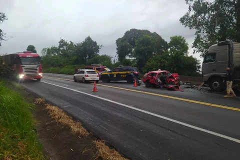 Três pessoas de uma mesma família morreram em um acidente entre um carro e um caminhão, na BR-376, em Ortigueira, na região dos Campos Gerais do Paraná. Segundo a Polícia Rodoviária Federal (PRF), a batida aconteceu na terça-feira (1º).