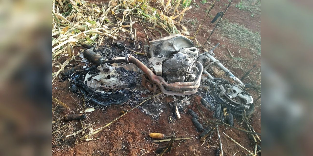 Com a batida na placa, a moto parou em um milharal, às margens da rodovia.