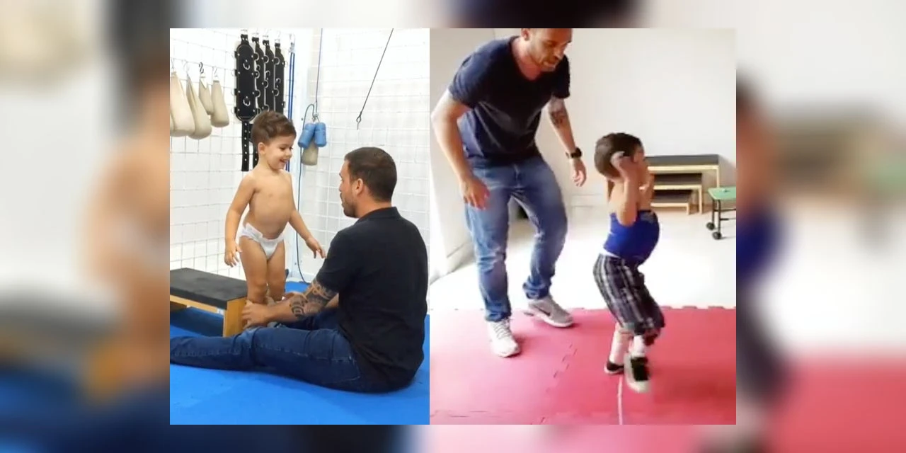 Para conseguir firmeza nas perninhas, o garotinho faz fisioterapia todos os dias pra superar as limitações impostas pela mielomeningocele, um problema congênito que afeta a coluna e a medula espinhal e não permite que elas se desenvolvam adequadamente.