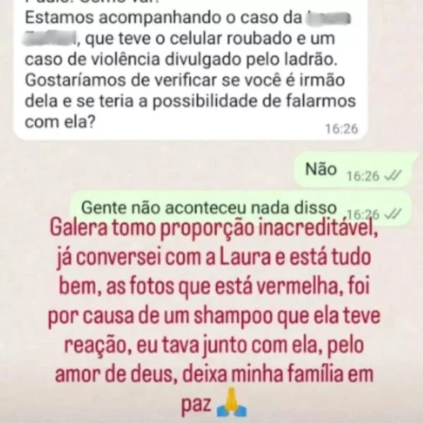 A jovem estudante de medicina Laura Zaffari que teve o celular furtado e as redes sociais invadidas contou para a Polícia Civil que não foi agredida pelo namorado. O caso aconteceu em Pato Branco, no Sudoeste do Paraná.