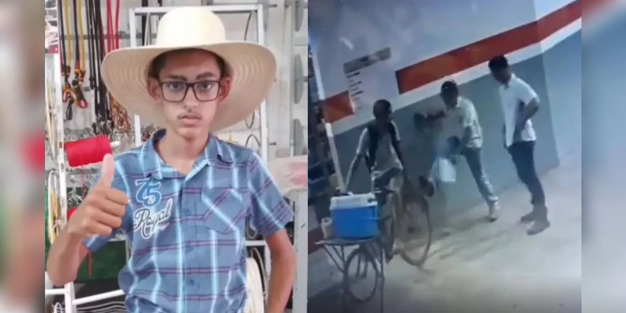 As imagens mostram o momento em que os dois homens provocam o adolescente e chutam a bicicleta que ele usa para vender os produtos, que são feitos pela mãe para arrecadar renda extra para a família.