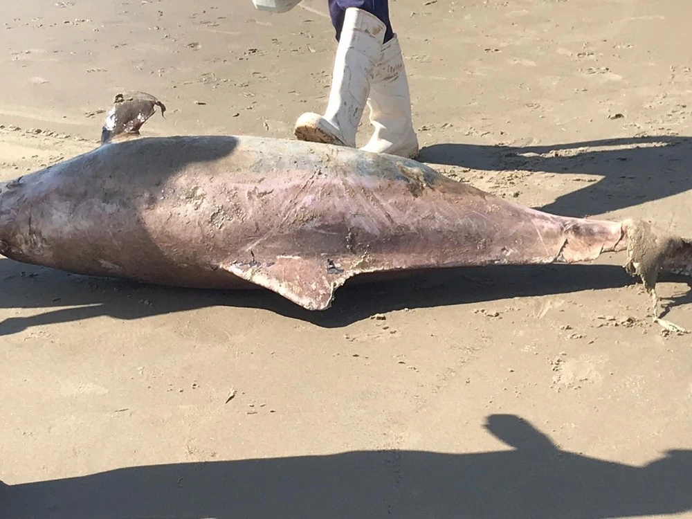 Um golfinho foi encontrado morto no balneário Inajá, em Matinhos, no litoral do Paraná. De acordo com o Laboratório de Ecologia e Conservação (LEC), a carcaça recolhida trata-se de um boto-cinza, Sotalia guianensis, com 1,84 metro de comprimento.