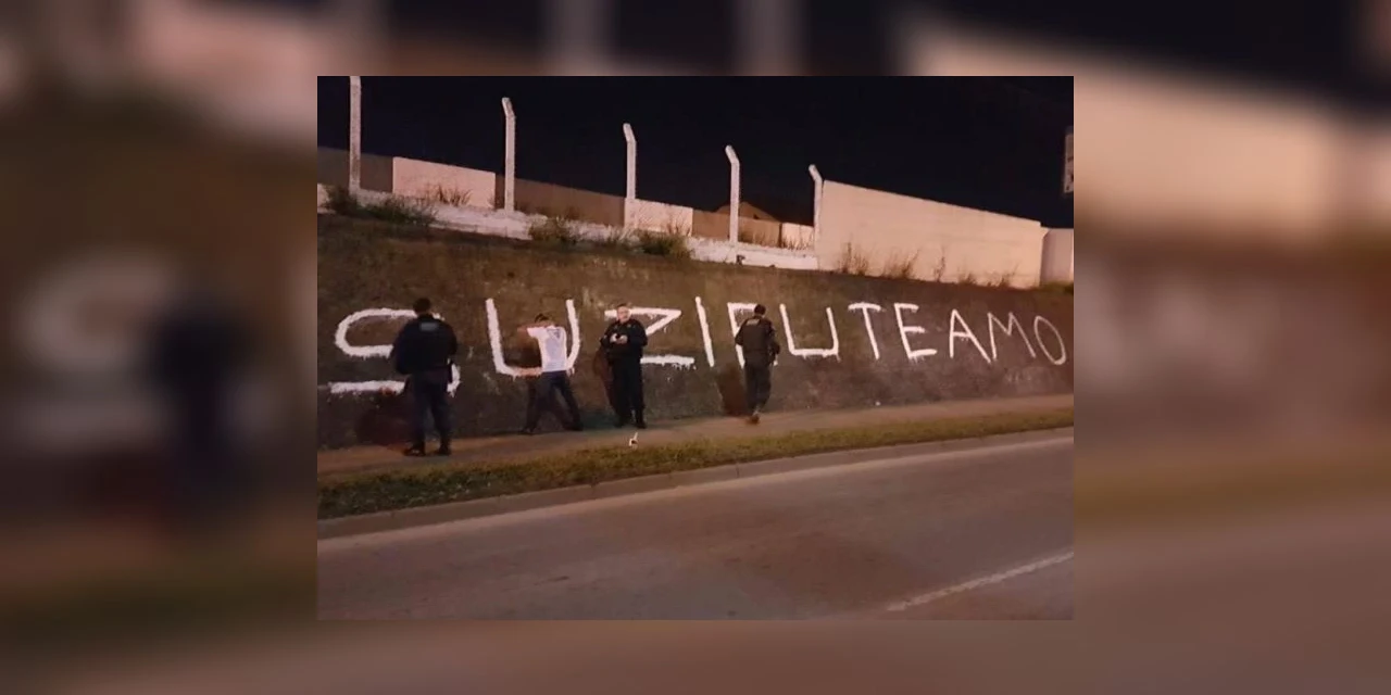 Os agentes que realizavam patrulhamento pela Avenida Rui Barbosa em frente ao Aeroporto Afonso Pena, notaram um homem pichando um muro, com o dizer “SUZI EU TE AMO”.
