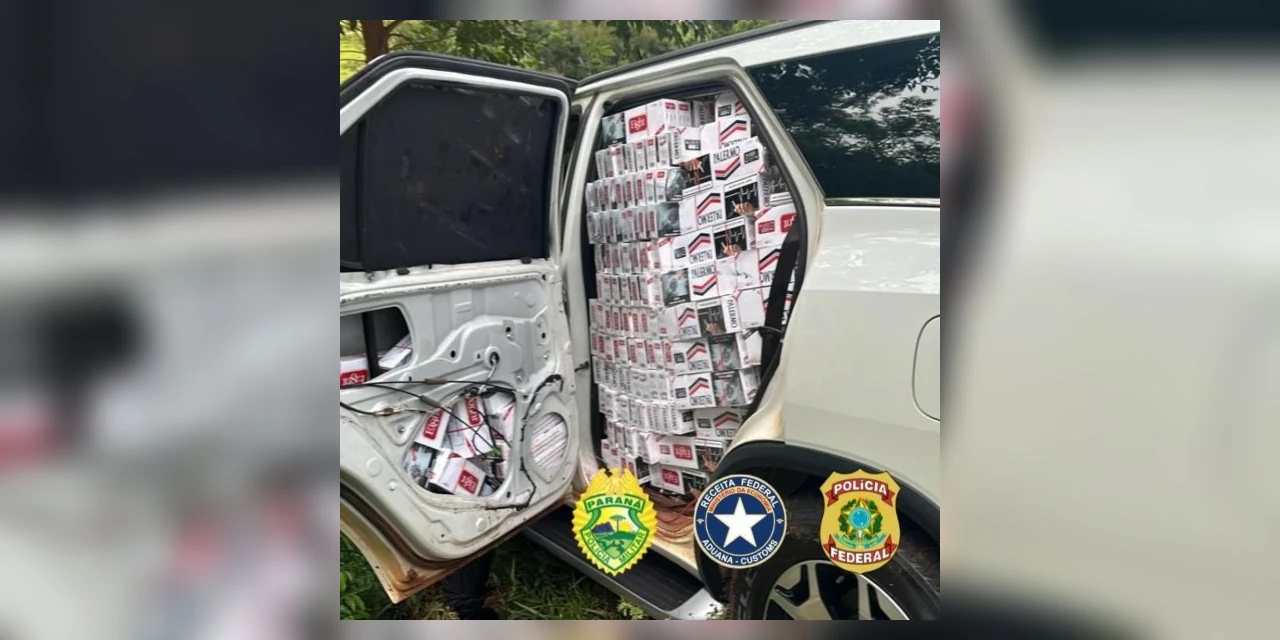 Um homem foi preso após tentar transportar aproximadamente 26 mil maços de cigarro, na tarde desta segunda-feira (04). Ele usava um carro roubado e trafegava na PR-272, entre Faxinal e Mauá da Serra, no Paraná, quando foi abordado. A ação foi realizada em conjunto pela Polícia Federal (PF), Receita Federal e Polícia Militar (PM).