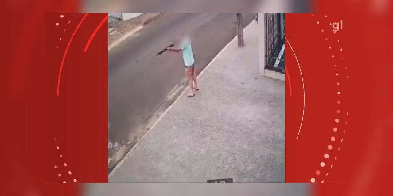 Imagens de câmera de segurança registraram o momento que ele bate nas vítimas e, depois, aparece com uma arma. Assista acima.