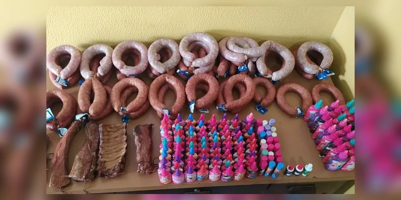 No local, ao ser abordado, ele admitiu ter furtado as linguiças e as costelas do estabelecimento. Ele não explicou a origem dos outros itens.
