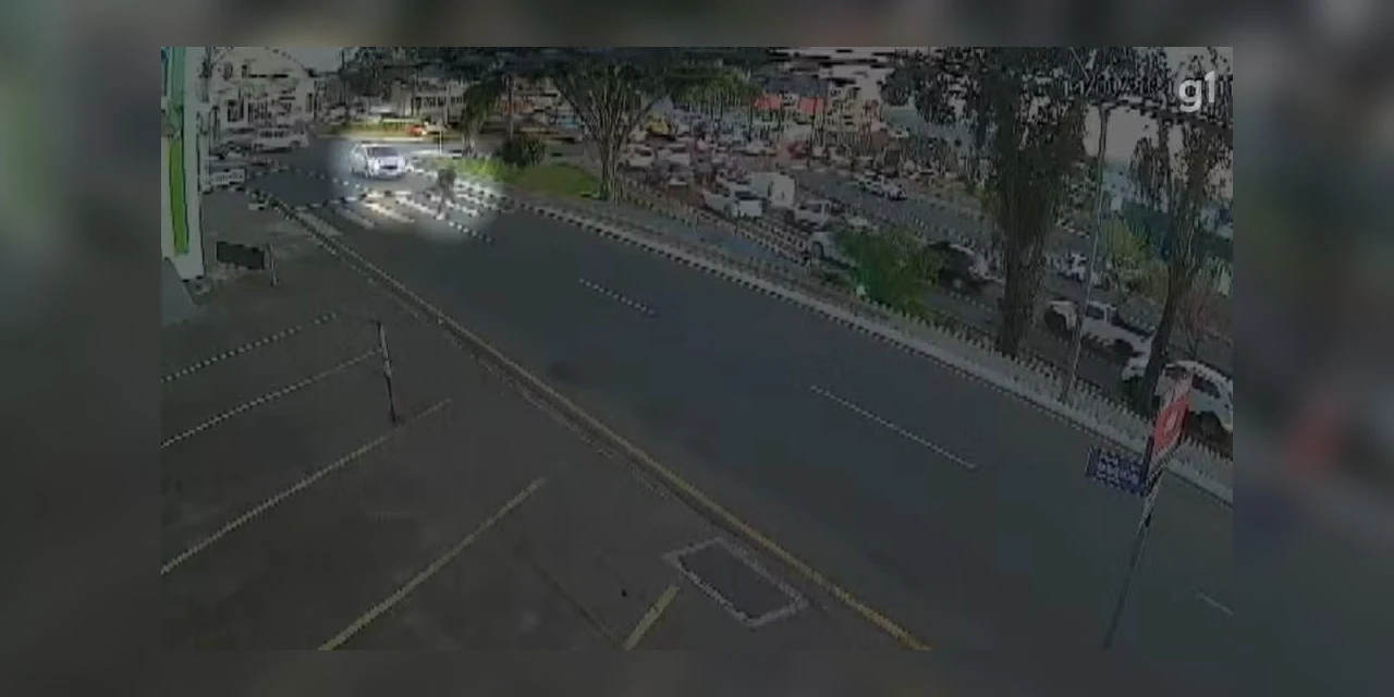 Imagens de câmera de segurança flagraram o momento em que o homem atravessa a rua e o veículo o atropela.