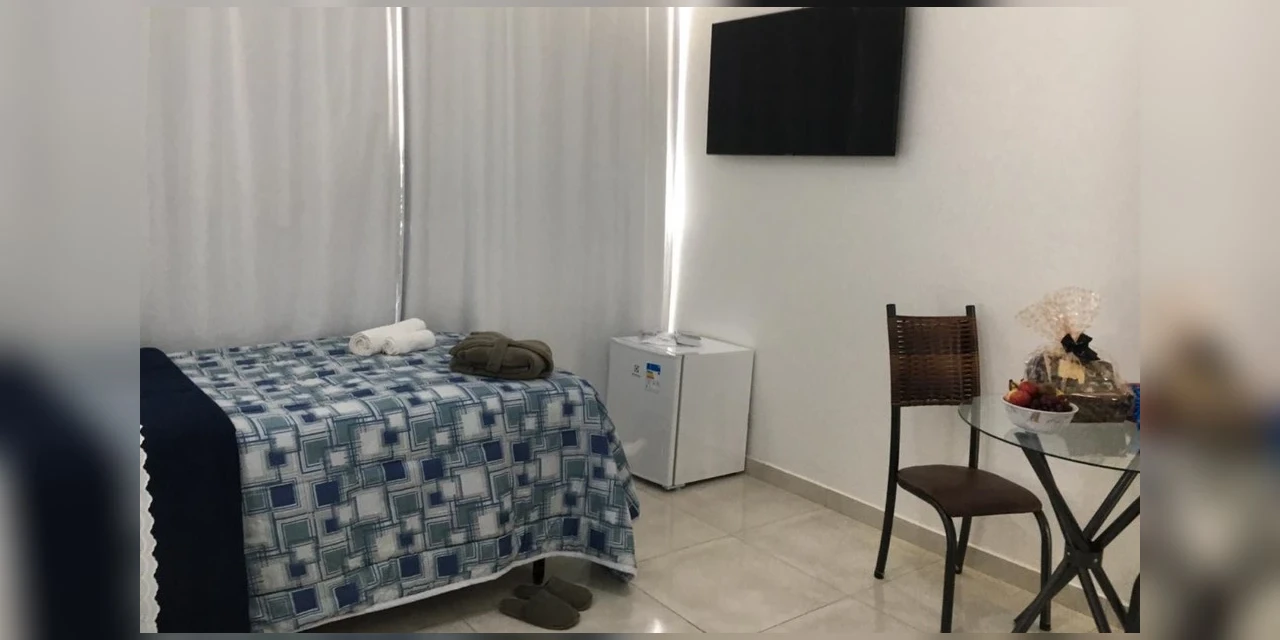 Internet, TV a cabo, frigobar e geladeira sem itens alcóolicos;