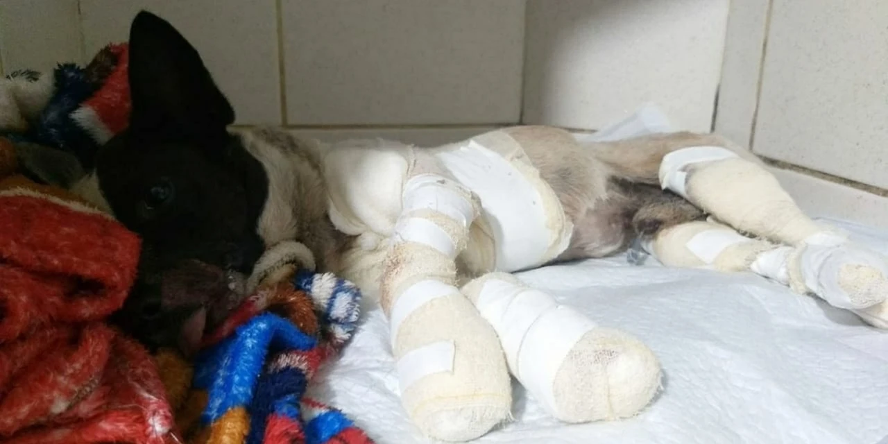 O animal foi socorrido e levado para atendimento veterinário. O cachorro teve ferimentos por todo o corpo, os ossos foram expostos, quebrou as quatro patas - duas estão praticamente mutiladas. Apesar da gravidade dos ferimentos, o cachorro está se recuperando.