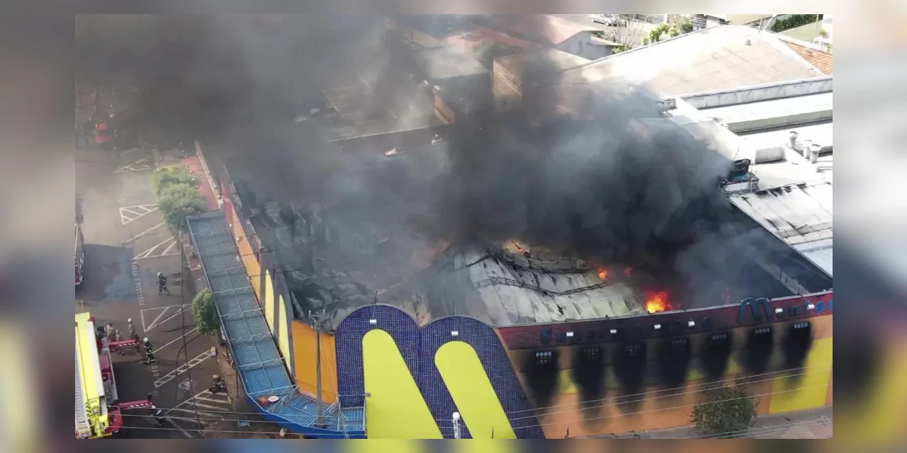 Na Avenida Paraná, a população ainda se reúne para acompanhar os rescaldos do incêndio de grandes proporções no mercado Montana, na manhã desta terça-feira (22), em Ibiporã, norte do Paraná. A estrutura do comércio ficou comprometida pelo fogo. Embora as portas estejam fechadas, pelos vidros quebrados é possível ver a gravidade da ocorrência. Imagens áreas também mostram a destruição (assista abaixo). Um funcionário terceirizado, de 42 anos, morreu.