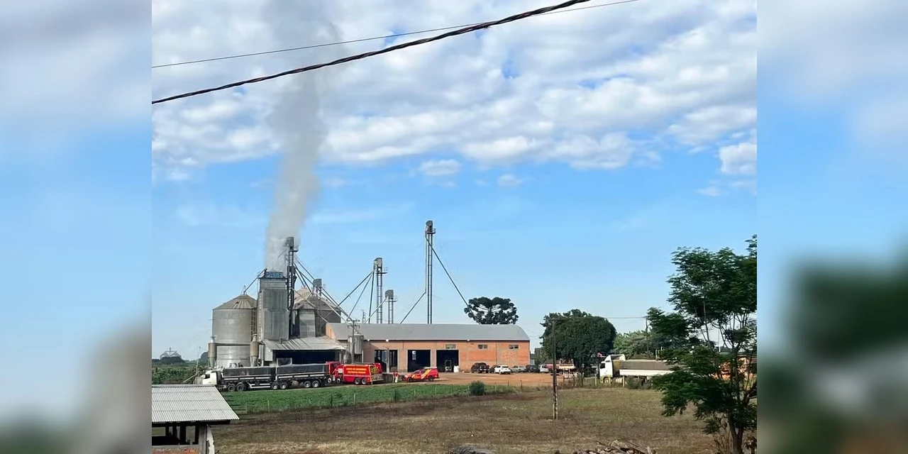O Corpo de Bombeiros combate, desde a madrugada desta quinta-feira (1º), um incêndio em uma indústria de silos e armazenamento de grãos de Ponta Grossa, nos Campos Gerais.