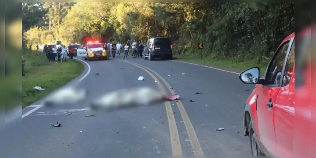 Um jovem casal, que estava em uma motocicleta, morreu em um acidente na tarde deste domingo (25), na PR-483, no distrito de Guaragi, em Ponta Grossa, nos Campos Gerais. A colisão com outros dois carros aconteceu na altura do km 22, perto de Guaraúna.