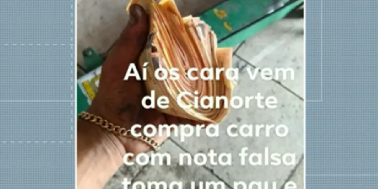 Na postagem, o jovem escreveu a seguinte mensagem: "Aí os cara vem de Cianorte comprar carro com nota falsa, toma um pau e perde tudo".