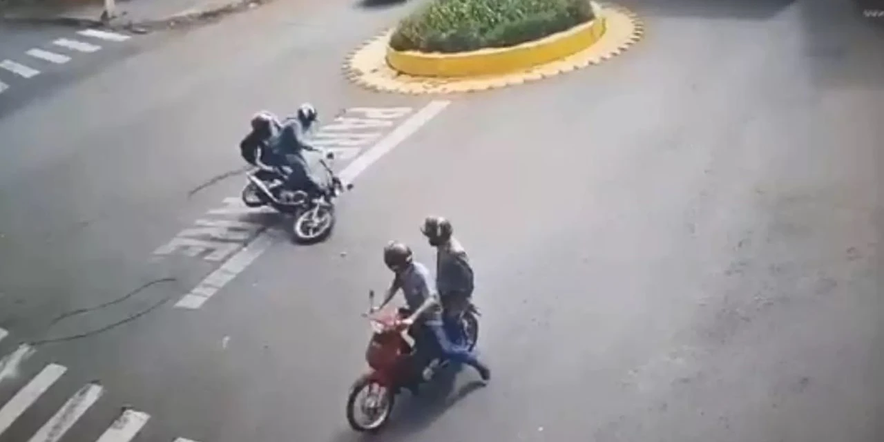 Um motociclista passou pelo local logo atrás do caminhão e a garupa da moto ficou enroscada nos fios na altura do pescoço. Ela foi arrastada por alguns metros pelo fio preso ao caminhão. Imagens de câmeras de segurança flagraram o momento exato do acidente.