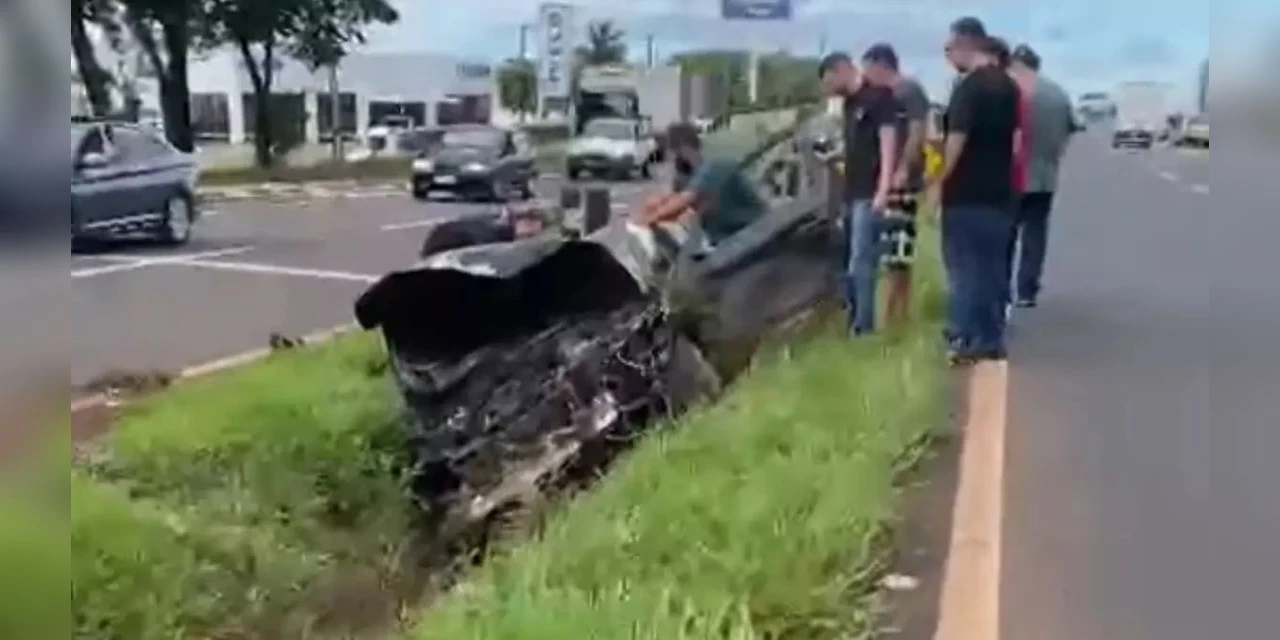 Para não colidir com a motocicleta, o motorista tentou desviar, mas perdeu o controle da direção e capotou por diversas vezes. Com o impacto, o rapaz ficou preso às ferragens.