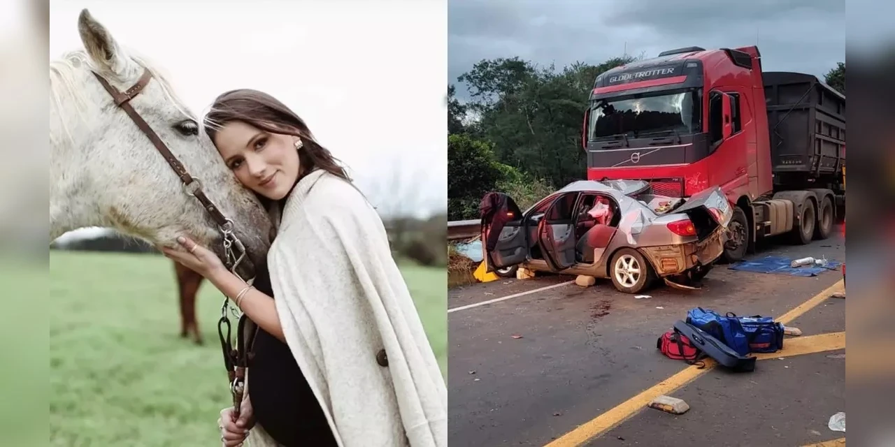 Uma jovem grávida, de 25 anos, morreu em um grave acidente na SC-157, no município de Quilombo, no oeste de Santa Catarina. Sabrina Stochero estava em um Toyota Corolla, acompanhada com o marido, quando o carro se envolveu em um acidente com um caminhão e uma carreta, na tarde desta segunda-feira (15).