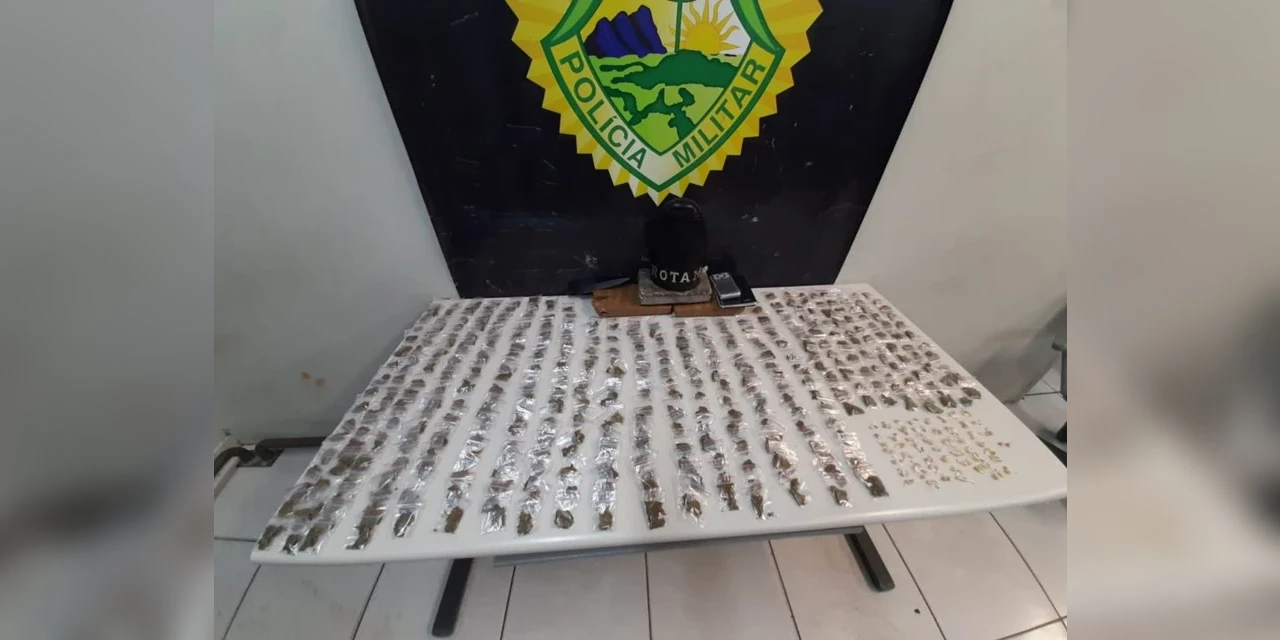 A polícia apreendeu três quilos de maconha, cem 100 pedras de crack, balança de precisão e caderneta de anotações – todos os materiais característicos do tráfico de drogas. “Esse tem diversas passagens ainda como menor de idade e agora foi inaugurada a vida criminal, acabou de fazer 18 anos. Esse não aprende”, finalizou o tenente.