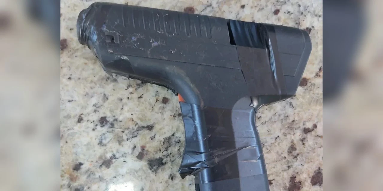 A polícia disse ainda que a pistola de cola quente estava revestida com fita isolante, o que trouxe uma aparência de uma arma de fogo.
