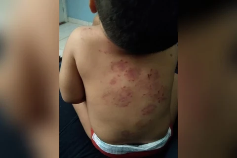Pelas fotos enviadas pelos pais é possível ver várias marcas nas costas e no rosto. Os pais o levaram para um hospital da cidade, onde passou por atendimento médico e foi liberado.