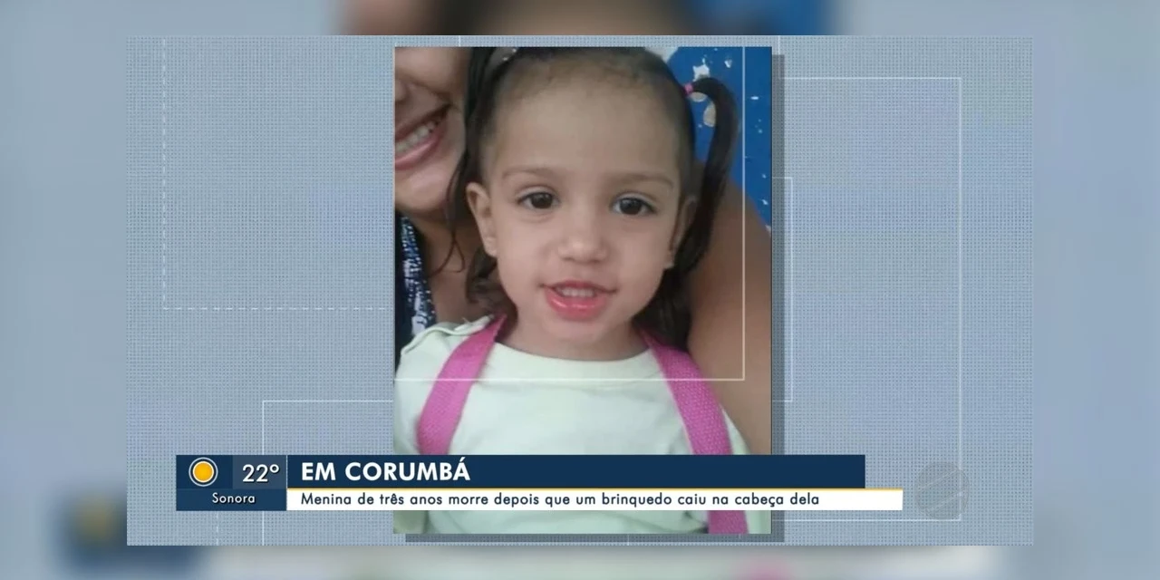 Uma menina de três anos morreu na noite de quinta-feira (13), em Corumbá, a 415 quilômetros de Campo Grande, após um escorregador de madeira, de um parquinho, cair sobre ela.