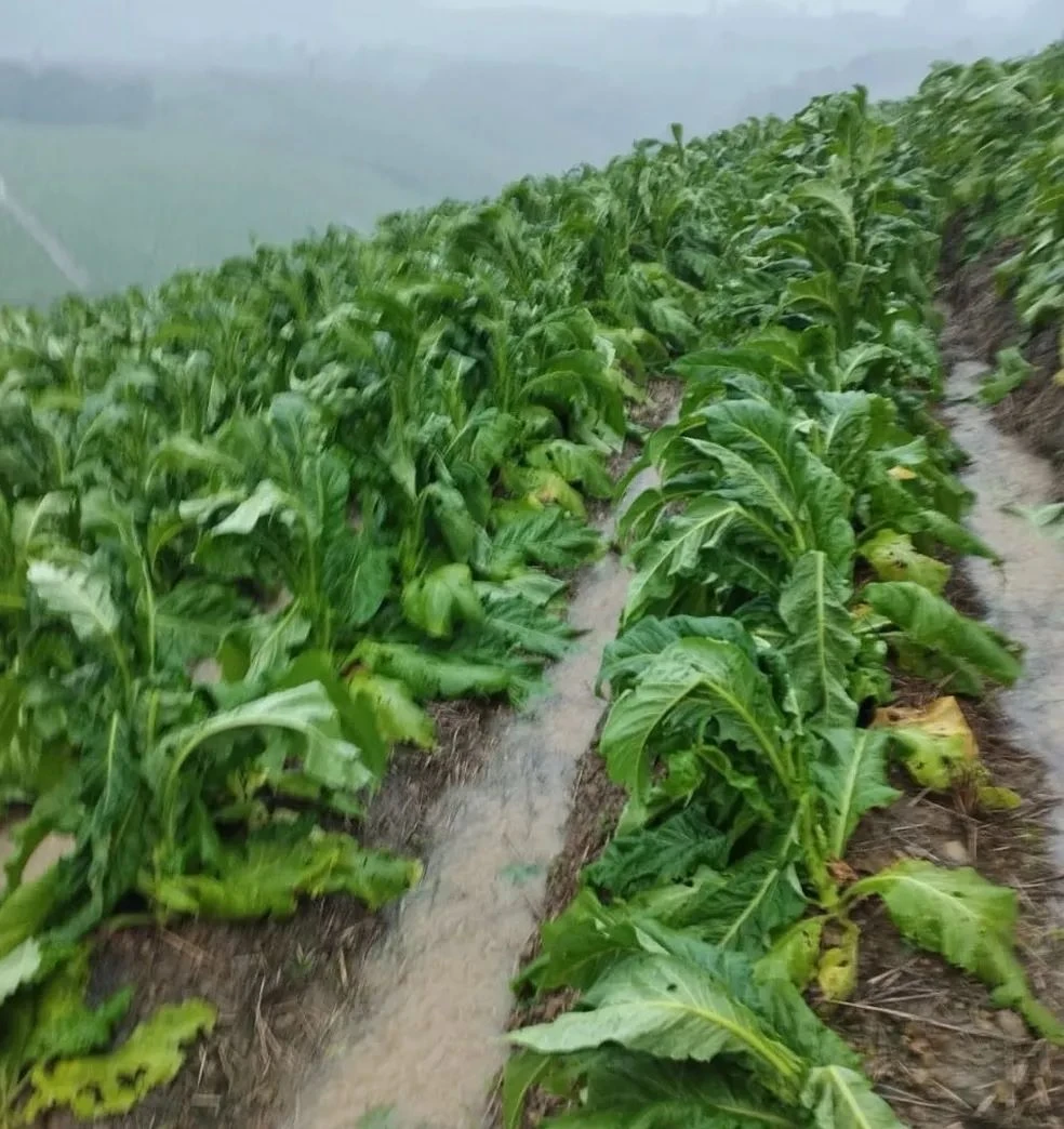 De acordo com Rebinski, a chuva foi rápida, e as pedras de gelo destruíram a plantação de fumo, além de quebrar parte do telhado do barracão.