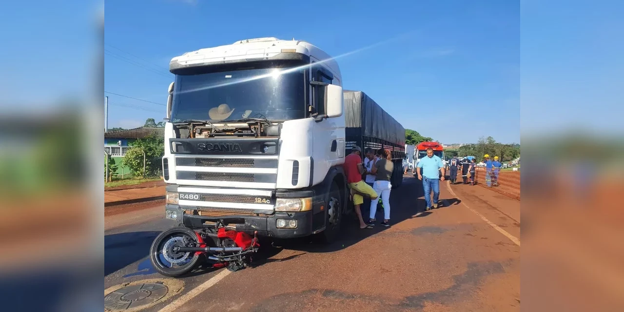 Um motociclista morreu após bater na traseira de um carro, cair na pista e ser atropelado por um caminhão, em Cambé, no norte do Paraná, na manhã desta segunda-feira (6).